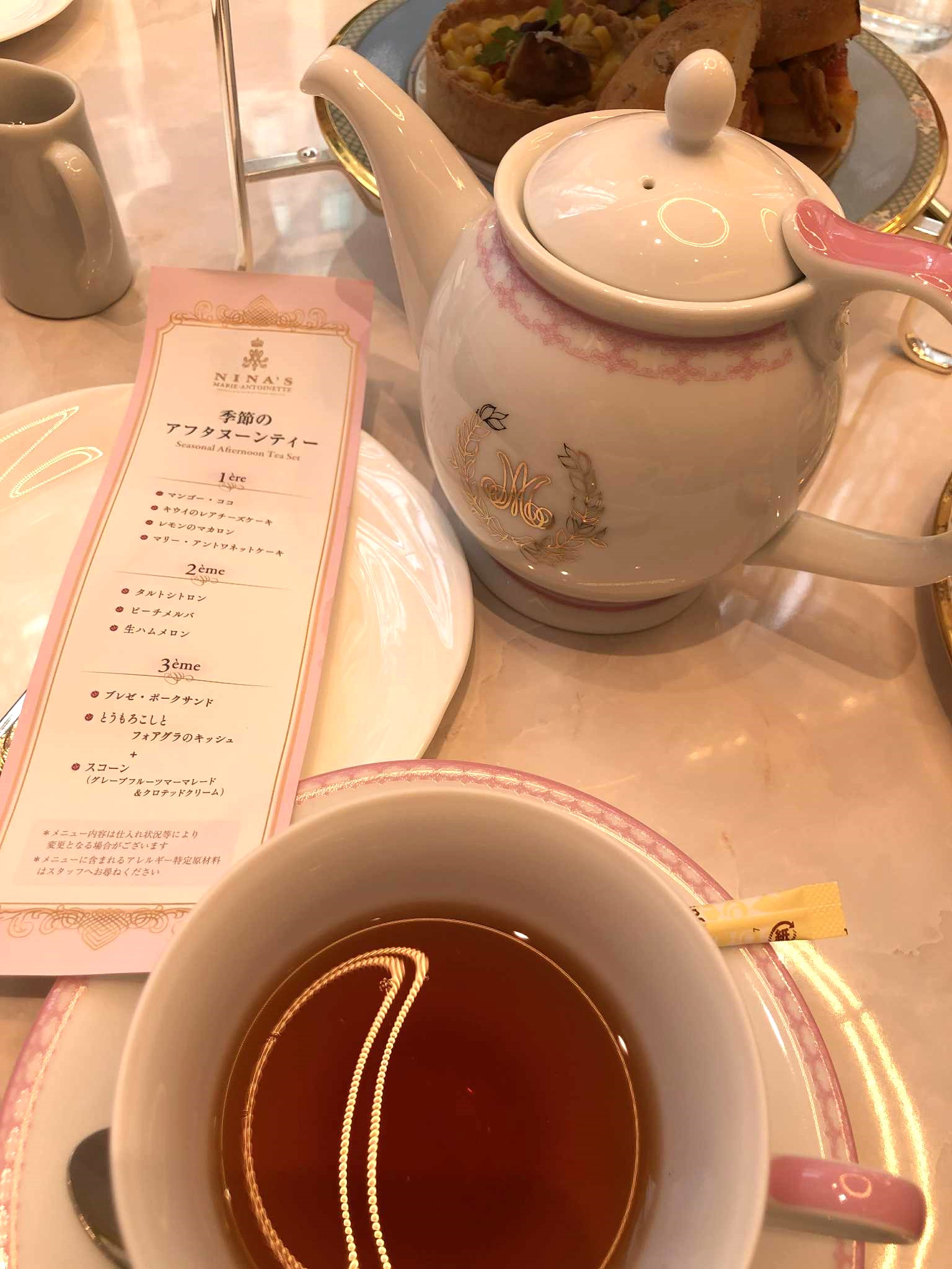 セイボリーもしっかりありましたし、お茶はティーポットに2杯分くらいはいってました。