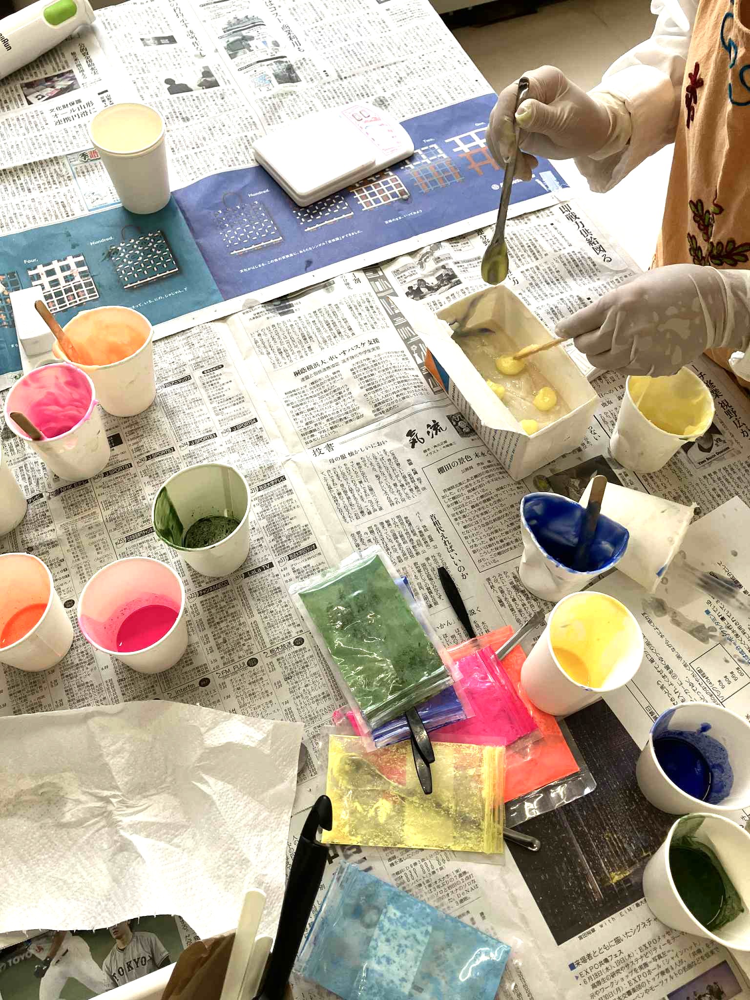 石けんの上に納豆の粒をイメージして落とした粒々でしたが、
