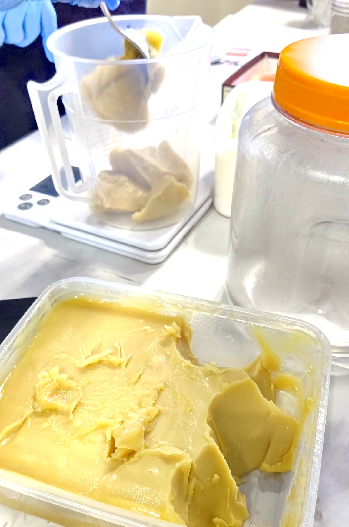石けんの中にも馬油で作った石鹸の切れ端を入れて、ボリュームを出しました。