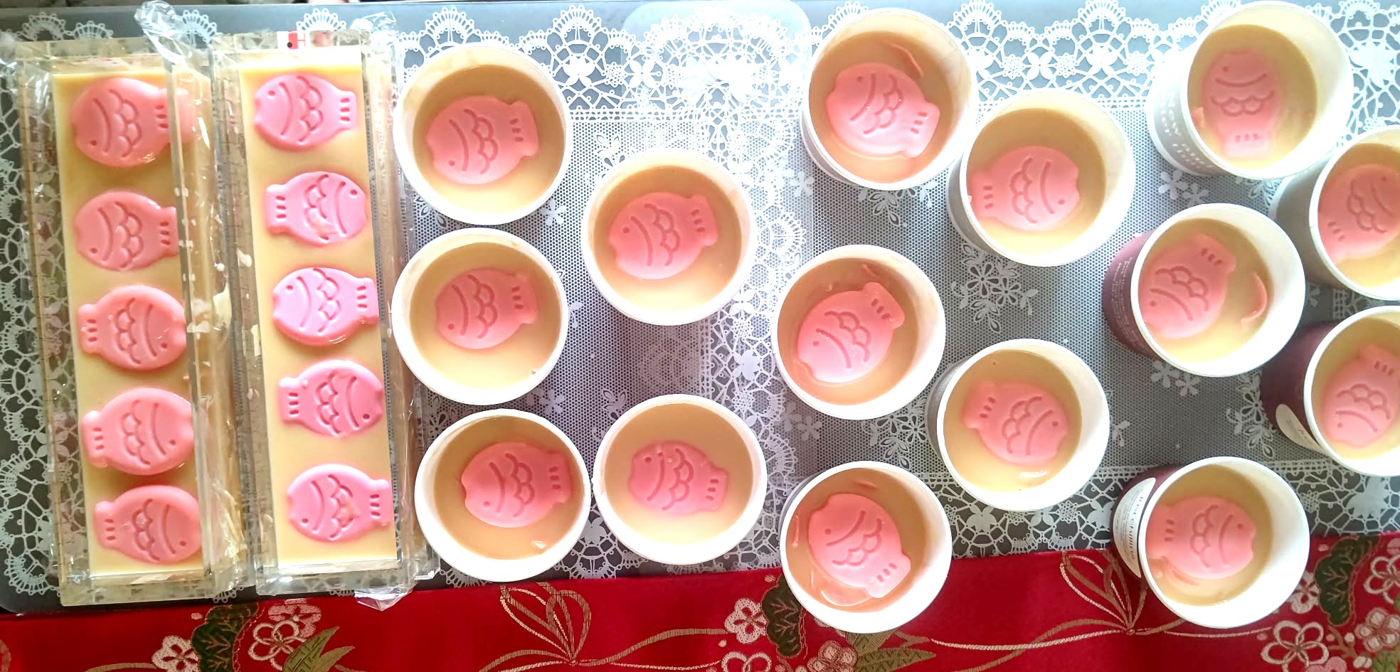 そして今回はお魚(鯛なんだと思う)の石けんも事前に馬油で作っておきました。