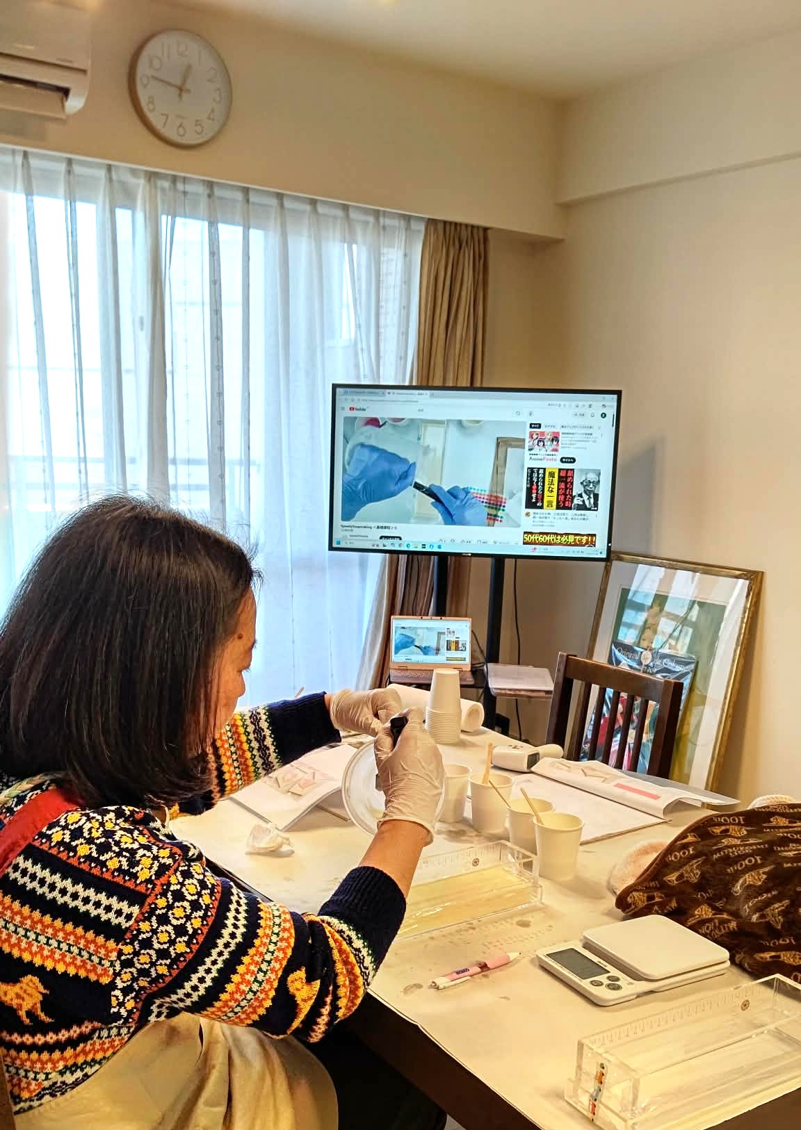 動画を見ながらの石鹸作成は、